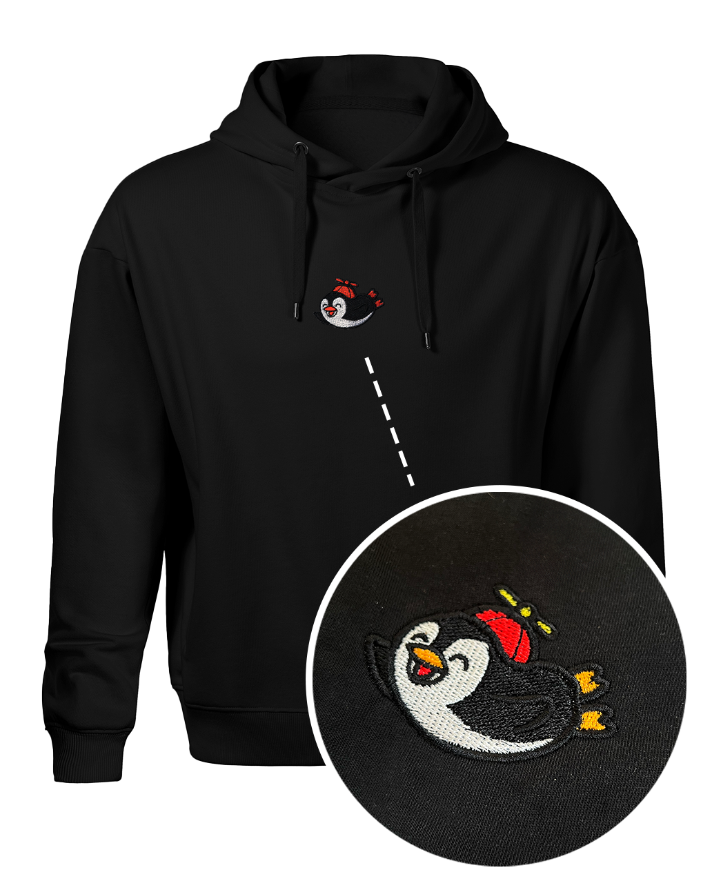 Lze ji prát na 40 °C. Mikina s výšivkou Happy Tučňák přináší klid, humor a nadhled – ideální pro všechny, kdo si jdou vlastní cestou, i když zrovna nelétají.